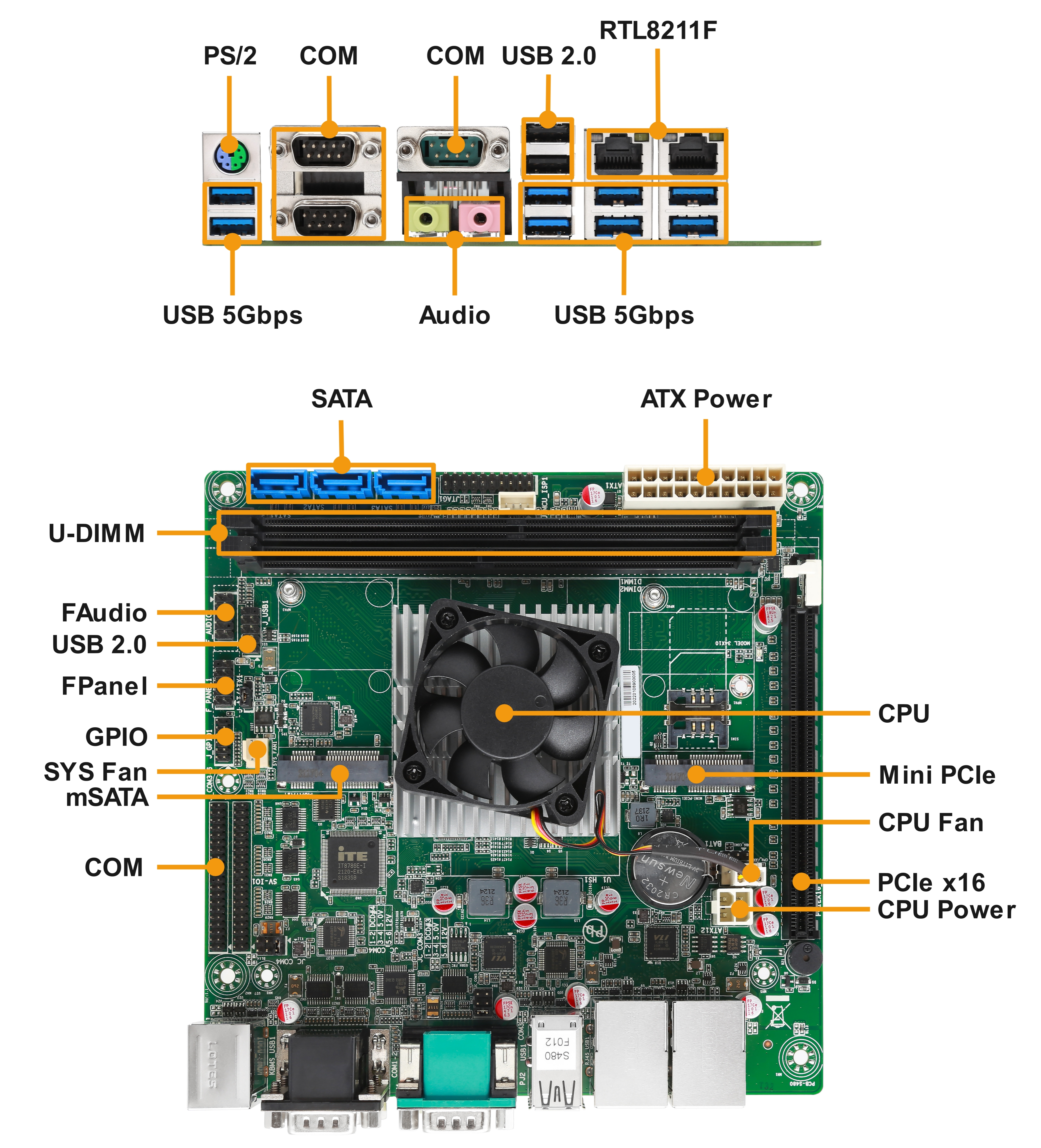 ? Mini PCIe 1 * Mini PCIe插槽(PCIe Gen 3 x1 + USB 2.0(與內(nèi)部USB 2.0插針共享,默認Mini PCIe插槽)信號,附帶1 * SIM卡插槽)