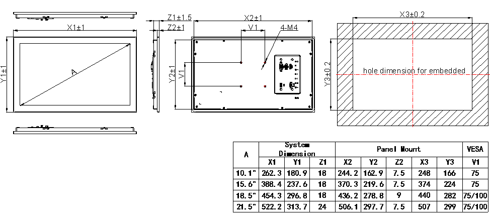 I/0 接口 DP, HDMI, VGA, USB觸摸 觸摸類型 投射式多點電容觸摸屏