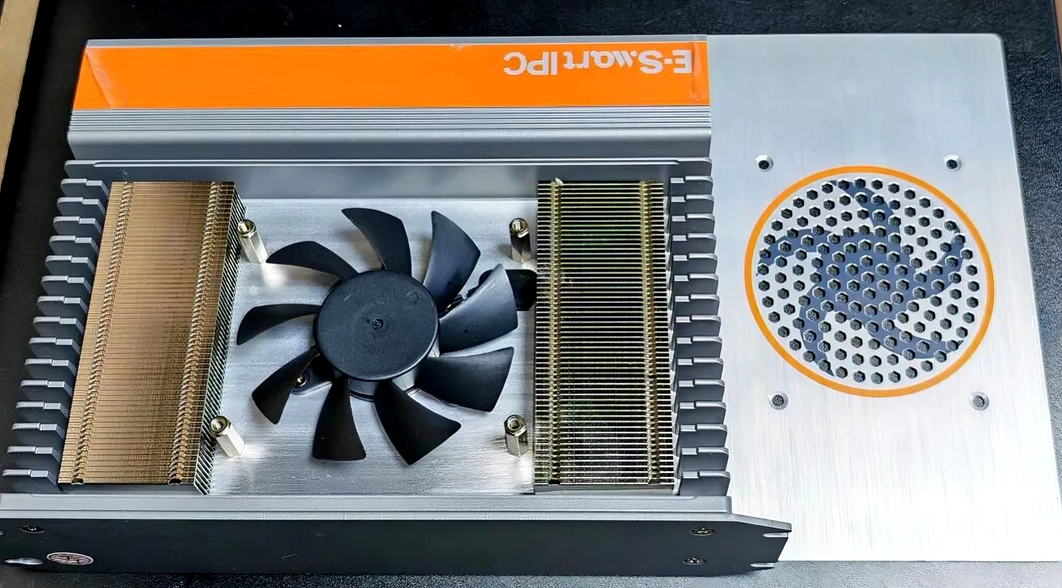 AK6采用工業級有風扇方案,是因為在高算力處理器、封閉機柜及高溫環境下,可控的主動散熱比“完全無風扇”更安全可靠。其創新之處在于采用了外置風扇與機身分離的設計:風扇不直接貼合主板,而是通過一組厚實的高密度散熱鰭片進行熱傳導。這樣既物理隔絕了外部粉塵油污,又能快速吸收主板熱量并由外置風扇高效導出,形成“導熱-散熱”閉環。分離式設計也降低了風扇振動對主板元件與焊點的影響,進一步提升了整機在振動環境中的運行穩定性。